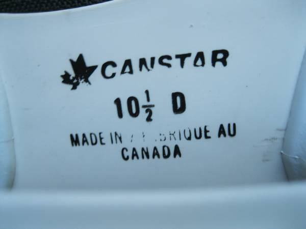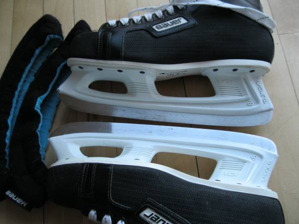 Used skates. Light marks/wear/discoloring. Very light rust on blades. The inside has been sprayed with fabric odor eliminator. Okay to try on before buying.