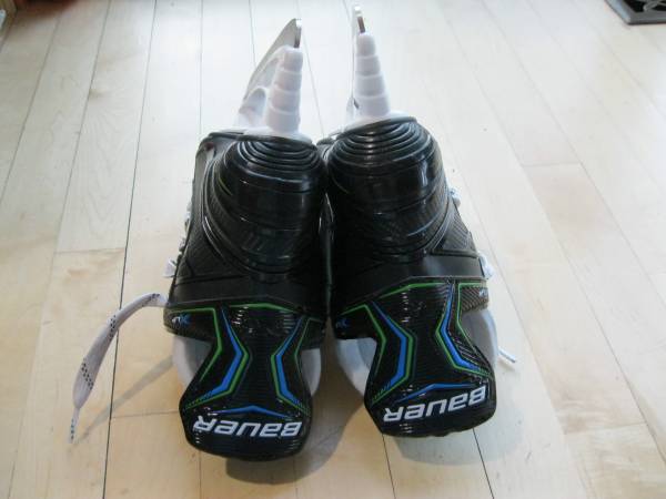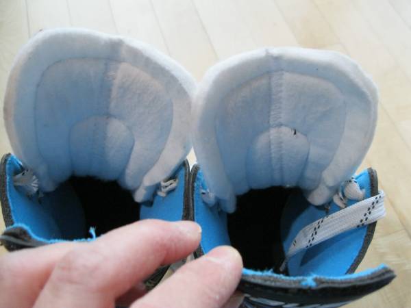 Used skates. Light marks/wear/discoloring. No rust on blades. The inside has been sprayed with fabric odor eliminator. Okay to try on before buying.