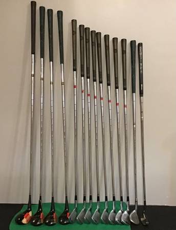 Irons - 2, 4-PW. Good condition, some wear and tear, a little rust on back side. But faces are clean. Original grips. Grips are in good condition considering age.