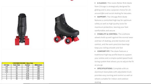 *Chicago 1905 Boy Girl Size 10 Child Black Roller Skates NEW -...