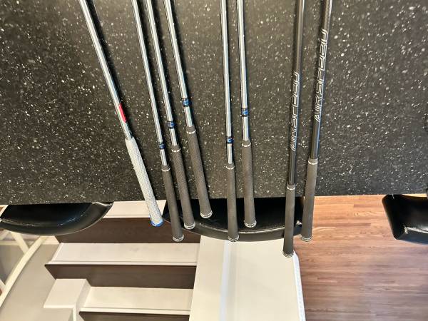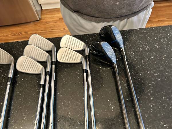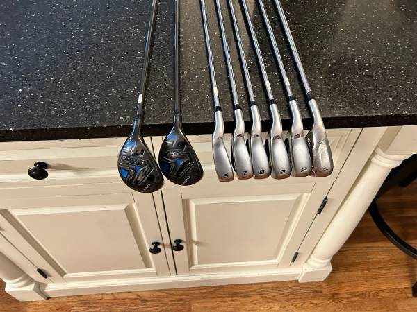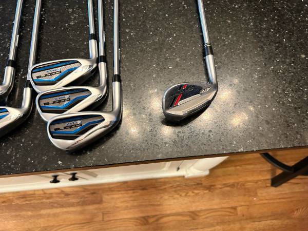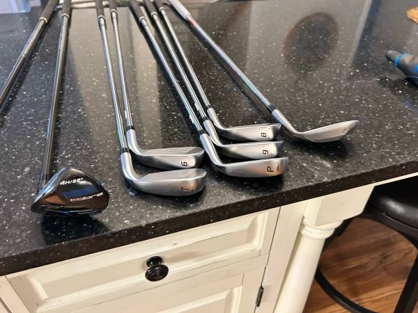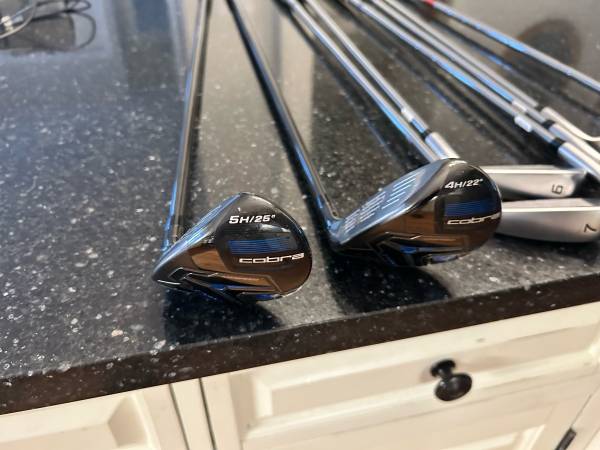 Cobra F Max Airspeed left handed 4-pw . Stiff shaft. The 4,5 are hybrid graphite stiff shafts. 6-pw steel stiff shaft. These clubs are brand new. I’ll throw in a free Taylormade ATV 56 Wedge ( brand new grip) .You can save 200$.Left handed golf clubs for sale,, Cobra, Ping,Taylormade,Titleist