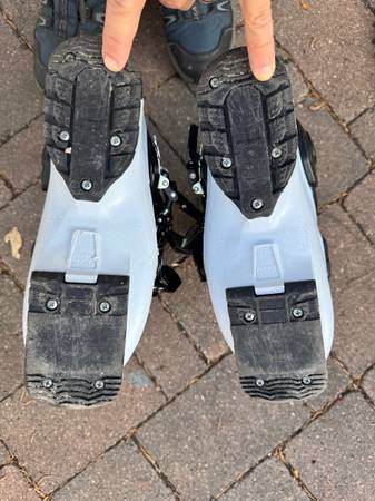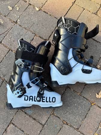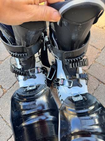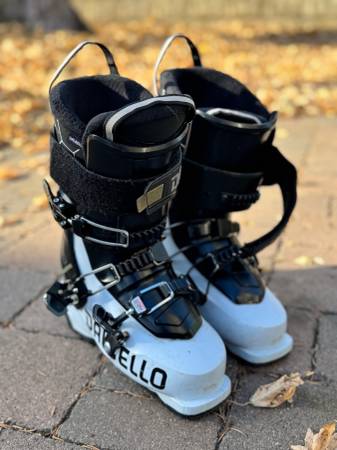 Excellent condition ski boots. Purchased new from REI last year, used one season, perhaps 40-50 days. Front face folds out on a hinge for easy entrance. Highly adjustable. 23.5 Mondo, 278mm...