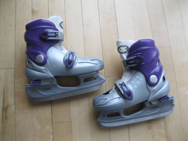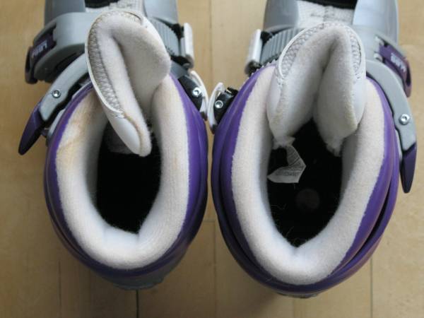 Used skates, very light marks/wear/discoloring. One tiny spot of rust on blades. The inside has been sprayed with fabric odor eliminator. Okay to try on before buying.