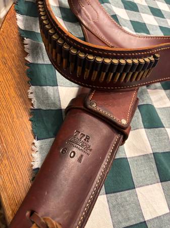 George Lawrence handmade premium leather in this model retail most place ebay and Gun sight at 190.00 dollars for just the holster and gun belt.