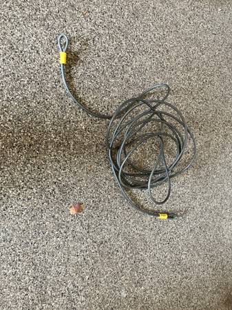 The KryptoFlex 1030 Looped Cable is a 10mm braided steel cable providing increased cut resistance. The double loops are for use with U-locks, disc locks and padlocks. (Not included) The vinyl coating protects bikes and equipment from scratches. The KryptoFlex 1030 Looped Cable is 0.4-inch x 30-feet.