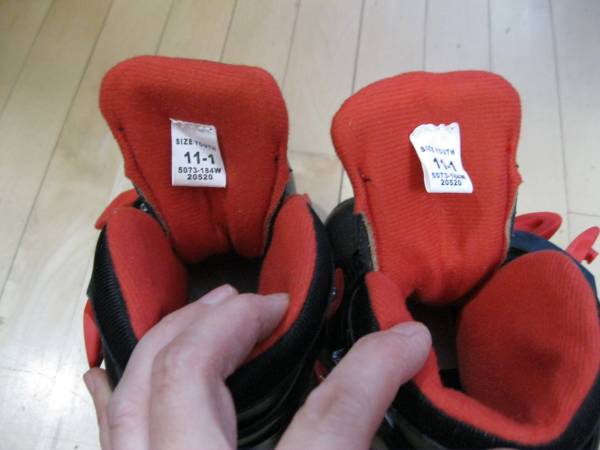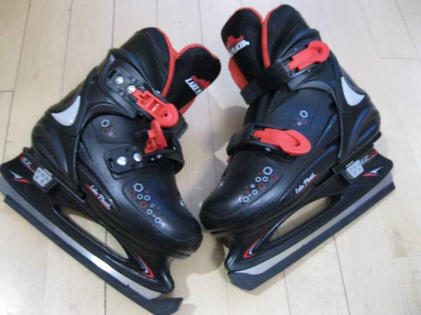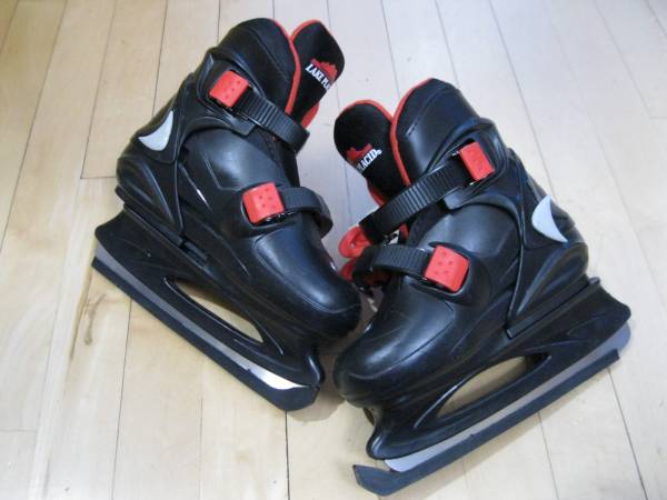 Like new skates. Barely any marks/wear/discoloring of skate. No rust on blades. The inside has been sprayed with fabric odor eliminator.