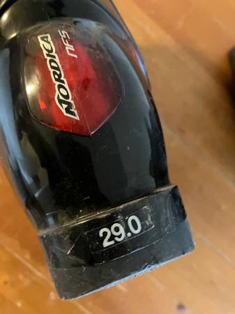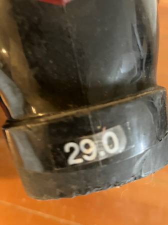Nordica down hill ski boots size 29 and my shoe size is us 12 and boots fit me well. These are a few years old and haven’t seen much use about 5 times through the years I’ve owned them, I bought them new . $65 meet at Plymouth Home Depot. Picture show info and nice condition they are .