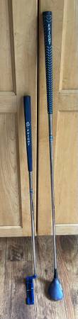 Good condition with good grips Blue Knight Lancer 34 inch Golf Putter Superstroke pistol Knight classic antique wood driver Both for $20 W Bloomington porch pickup