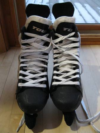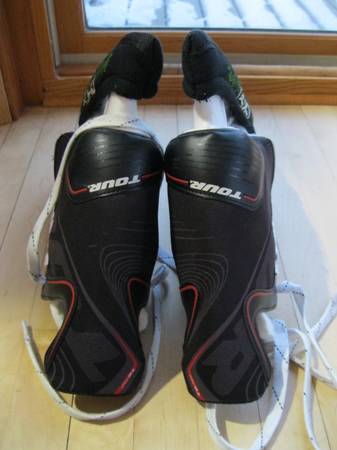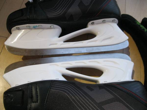 Pre owned skates with light marks/wear/discoloring. No rust on blades. The inside has been sprayed with fabric odor eliminator. Okay to try on before buying.