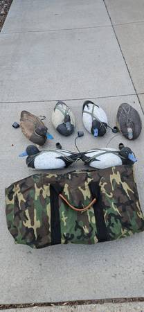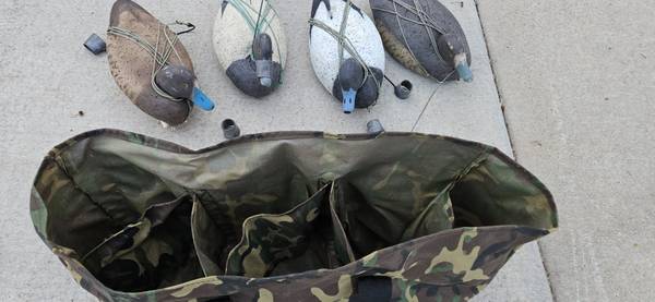 Set of 8 LL Bean Cork Decoys including 2 custom camo bags. Purchased in mid 1990's, used several seasons. Stored for 25 years.