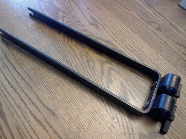 Wheel forks to mount front wheel to roof rack available for $10 each.