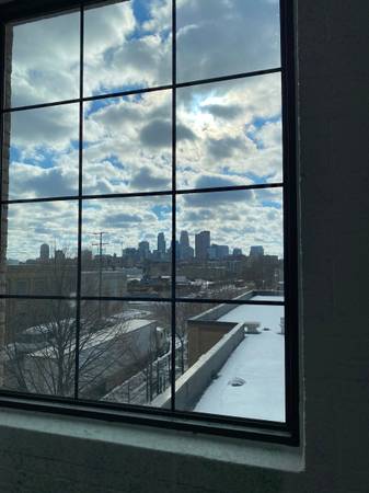 Beautiful 900 sq ft art studio/office space available for rent November 1st 2025. Perfect for painters but flexible for other purposes (no living). Beautiful south facing windows with outstanding views of downtown Minneapolis. Conveniently located just off hwy 94 and W Broadway Ave. Short distance to NE Minneapolis and the North Loop. Access to industrial cleaning sink in hallway closet. Shared restroom on the same floor as unit. Professional cleaning service maintains common areas three times a week. Parking lot for tenants in rear of building with access to ground floor elevator. Individual mailbox for unit in building entry. Wonderful community of artists and makers awaits you.