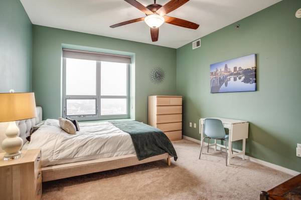 All of the amenities and creature pleasures required for city living are there in Skyscape. The views of Minneapolis to the south and east from this 12th-floor corner apartment will be breathtaking. The kitchen, dining room, and living room are all seamlessly connected by an open floor plan that ends at a private balcony. Savor a bedroom that receives plenty of sunlight and has a walk-in closet for additional storage. The spacious bathroom features a huge soaking tub and two sinks. For a range of shared facilities, such as a cinema room, fitness center, sauna, hot tub, and rooftop terrace with communal grills, head to the sixth floor. Savor the storage unit and warm parking spot that you were given.