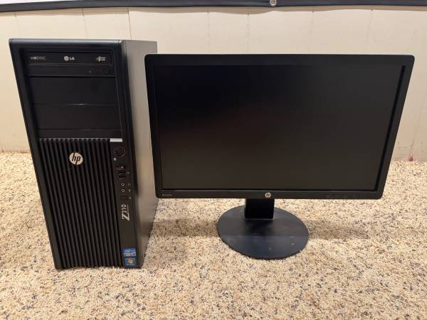 Commercial grade Hewlett-Packard desktop PC and monitor. The PC is running Windows 11 Pro. Monitor is Z22i.