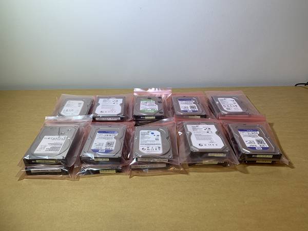 I have a HUGE lot of 3.5" hard drives for sale. All of them have been tested and wiped. I have at least 50x 1TB drives and another 50x mixed size drives. Looking to sell in lots of 20 or more only (no individual drive sales). Prices for drives are as follows: