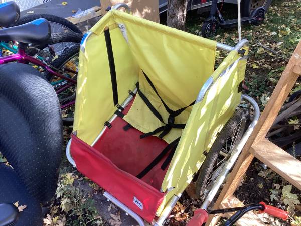 Good condition burley $75 and tandem stroller $50.