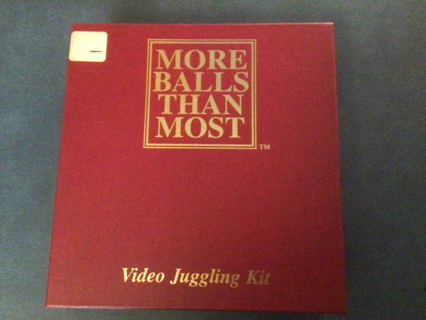 This is the juggling kit “More Balls Than Most”. It is an instructional course in the enjoyment of juggling. This kit is in excellent condition. It includes three juggling balls, an instructional booklet, and a VHS instructional tape. Original book included.