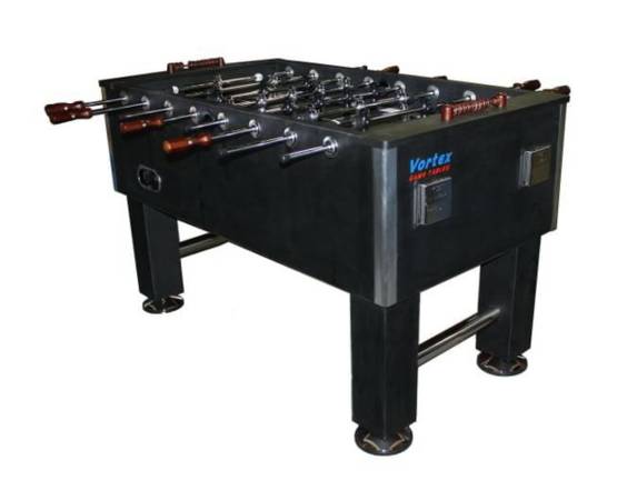 The best choice when it comes to game tables, the Elite Foosball Table from Vortex and Family Leisure is the cream of the crop! The high-end look is accentuated by the striking black and chrome players. Everything is designed with speedy games and sturdy durability in mind. The single goalie and side returns will promote quick and rapid gameplay, while the metal rods, strong chrome leg stretchers and more will ensure this foosball table lasts for years and years to come! And like all Family Leisure foosball table, the Elite by Vortex comes with free shipping nationwide!