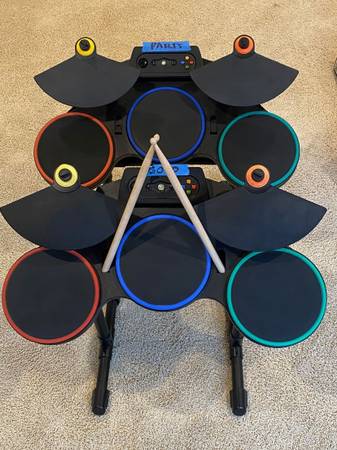 What you get: a fully functional drum kit, to include the pedal, also: my wife's original drum kit, with its pedal, for spare parts. (It has one thing not working, IDK what, I just know it caused her to lose points. I am not a gamer.)