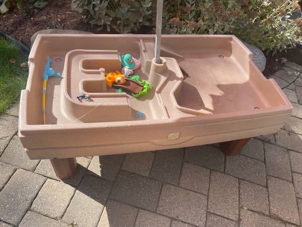 Used for several year and was stored outdoors. Holds sand and or water. Great elevated activity box for kids to play in. Pickup in Maple Grove. Note: toys shown are no longer available
