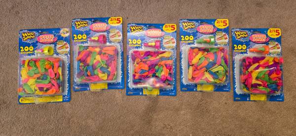 1,000 water balloons! Brand new. Each package comes with a shut off valve for a garden hose.