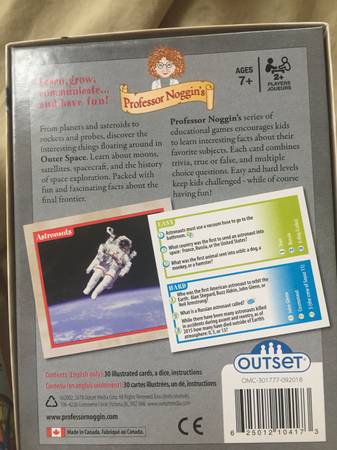 Great trivia card game that has 30 cards and 6 questions per card. Play with one of two levels of difficulty. Comes with a die as well and complete instructions as well. Game is complete with all pieces.