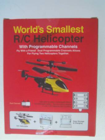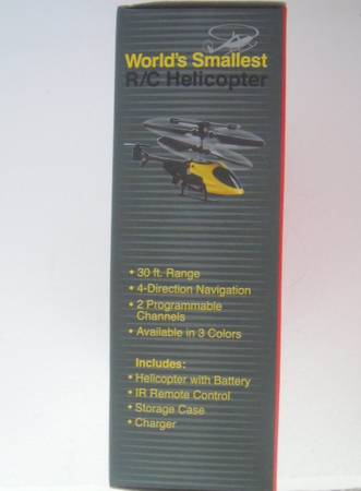 Westminster "World's Smallest" Remote Controlled Helicopter. New, unused in its original box as shown. 30 foot range 4 direction navigation 2 programmable channels Includes the helicopter with...
