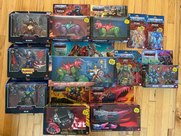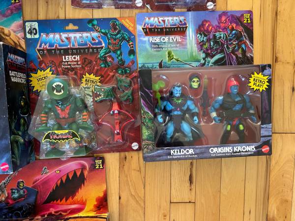 He-Man Masters of the Universe BRAND NEW! He-Man single $15 Skeletor single $15 Leech single $15 Rise of Evil 2pack $20 King Grayskull $20 Hordak $20 Trap Jaw $20 Panthor $20 Battle Cat $20 Roton...