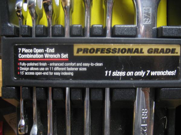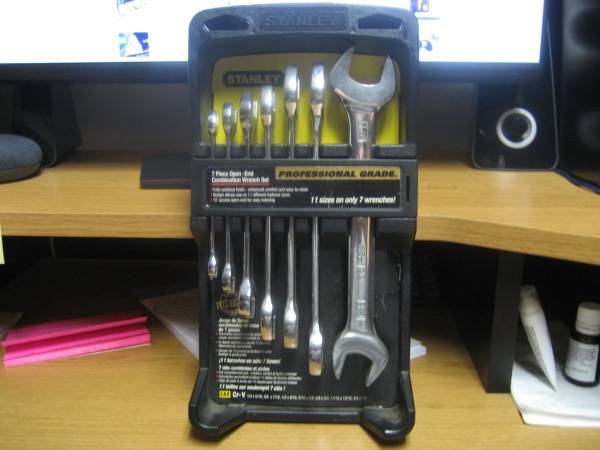 Stanley 7 piece open end combination wrench set 1/4" to 7/8" $10.00 Hand drill $20.00 Call or text Mike at
