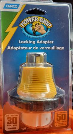 The Camco Power Grip 30-50 amp locking adapter allows you to connect a 50-amp RV plug to a 30-amp power pedestal socket at a campground or generator. Also useful for food trucks or remote...