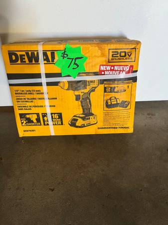 New, in the box, Dewalt 20V brushless drill. Comes with a bag and charger. This is a great deal!