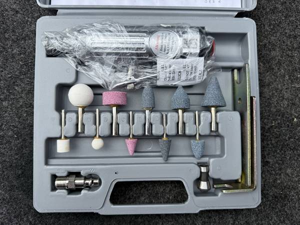 The AIR DIE GRINDER KIT is a high-quality air tool designed for precision grinding tasks. The kit includes, die grinder, bits, wrenches and comes with a convenient case for easy storage and transportation. Ideal for home and workshop use, this air grinder is a reliable and efficient tool for various grinding applications.