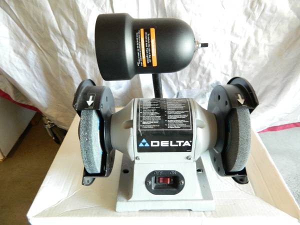 DELTA 6" grinder/ model #23-645 6" dual discs/ 3450 RPM/ 120-volt 2-eye shields/ flexible lamp/ tool rests, adjustable/ like new condition. local cash only/ no trades or delivery thanks