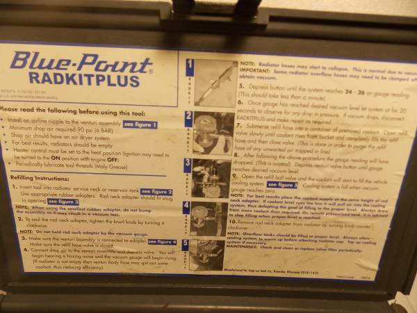 Blue Point RadKitPlus Vacuum Coolant System Filler Tool No Air Pockets - $119 (bloomington)