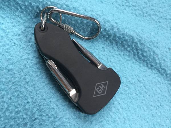 Listed on their website for $19.99, this little multi-tool hangs on a carabiner and includes five tools: