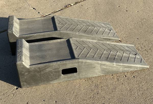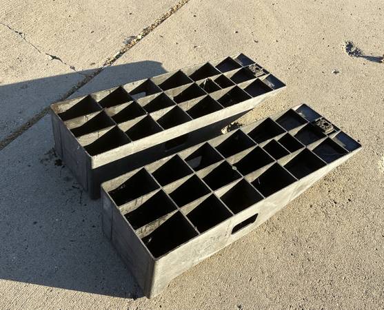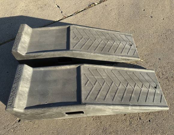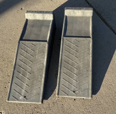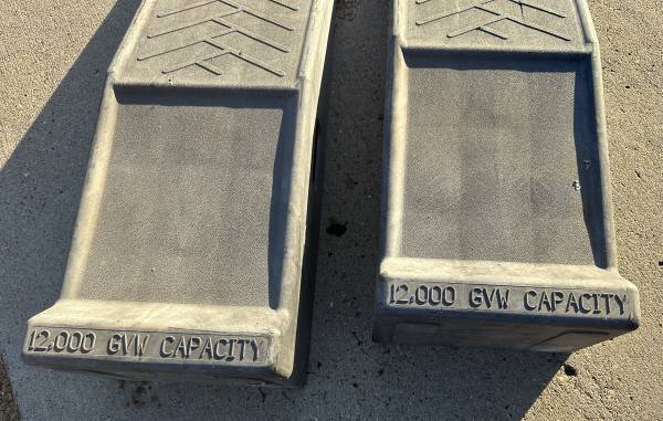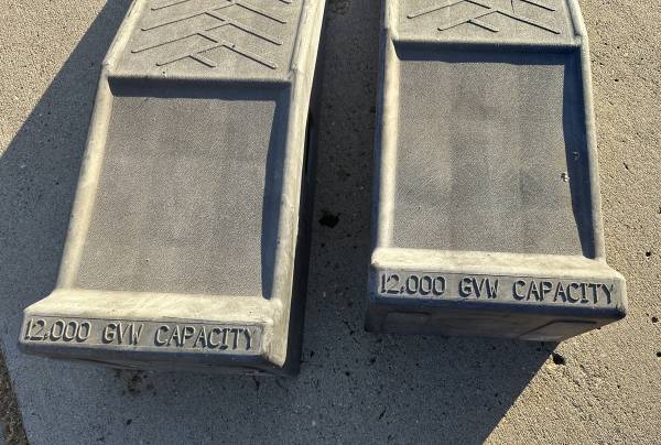 Super heavy duty black automotive vehicle ramps, with 12.000 lb capacity rating. Very sturdy; Ready to use. You can take these today.