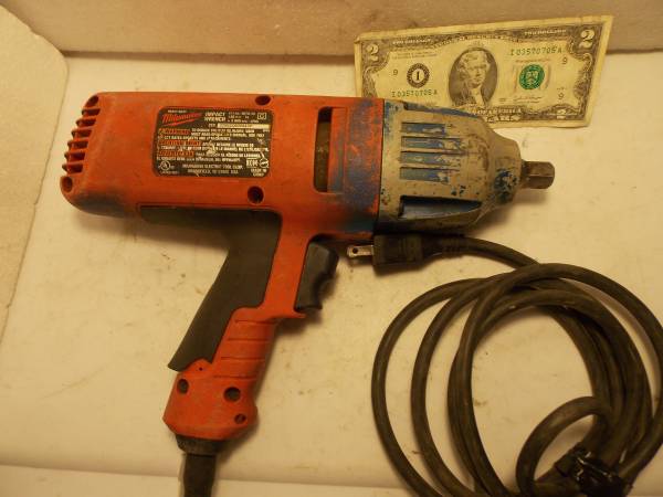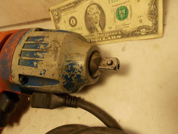 This Powerful 115 volt Plug-in 1/2 inch Impact Wrench has very little use on it. The owner painted parts of it with Blue paint to Deter and Theft of it. Simple rocker switch changes from Forward to Reverse instantly. This baby sounds and runs Like NEW. Great for Lug Nuts when you're Traveling. Race Car wheel Swap. Race Utility or Heavy Equipment Trailer Spare Tire change. Call (952)854-5 seven eight six