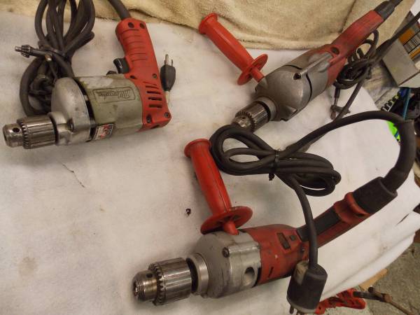 I purchased a set of 3 Great working Drills from an Estate Type sale. There are being sold as singles. They all have great cords and chuck keys attached to each with high quality Jacobs Chucks. They all sound and work perfectly both Forward and Reverse with Variable speed VSR .No Junk here. these are great. Call (952)854-5 seven eight six
