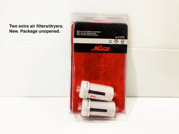 * Two extra Milton S1173 1/4" NPT mini in-line desiccant dryers/filters. Package unopened.