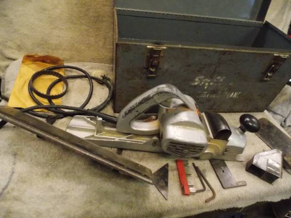 Nice SKIL Model 100 5.5 Amps Planer type 3 with steel Case + Extra Accessories and even 2 new Blades and a new spare Belt. This baby runs and sounds like new. For trimming doors and other wood edge and surface .Some people call it a surfboard Shaping or Boat Building Woodworking Electric power tool. 100 115 120 volt 8 foot Plug-in cord. A comparable unit on EBAY would sell for close to $600.00 and then there is shipping and Tax. Here is cash and Cary handshake price. Call (952)854-5 seven eight six