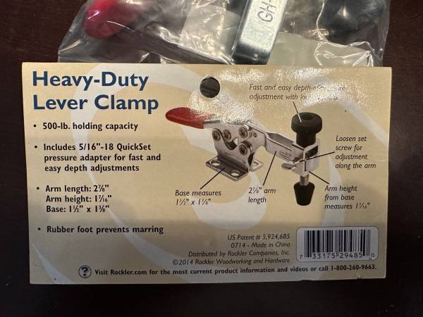 Rockler Woodworking Quick-Set Heavy-Duty Lever Clamp (#29485), Set of 3 One was used to build a test jig and decided to take a different approach. Two are new, sealed in original packaging