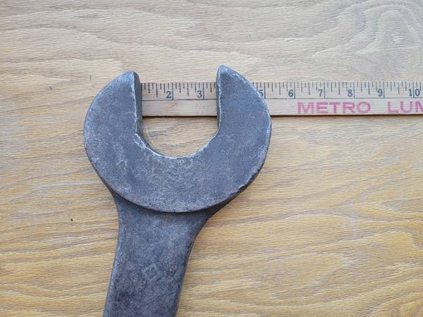 Huge solid vintage wrench measuring a 2 and 1/2 inch open end, and just about 10 and 3/4 lbs.