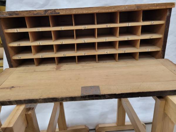 Vintage Pigeon Hole Cabinet with 28 compartments 32 1/4" wide 12" high 12 3/4" deep