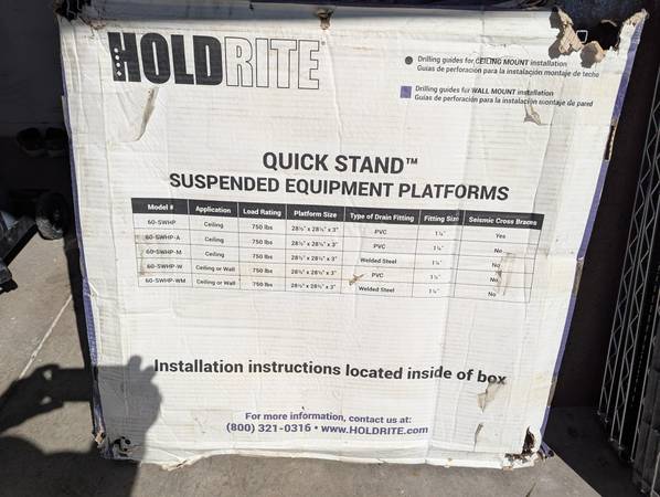 Wall Mounted Equipment Platform supports up to 50 gal. Water Heater or 750 Lbs It sells new for $470 at mayor plumbing supplier I'm selling it for half the price $ 200 Cash or Venmo only Product...