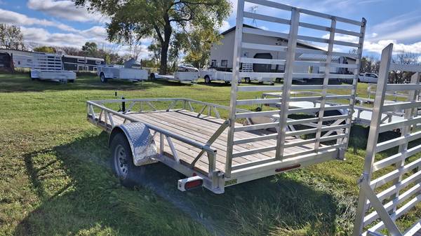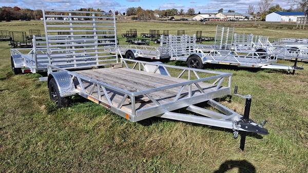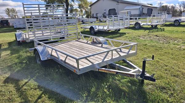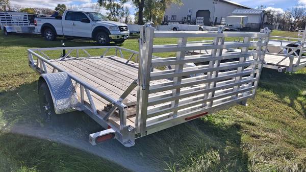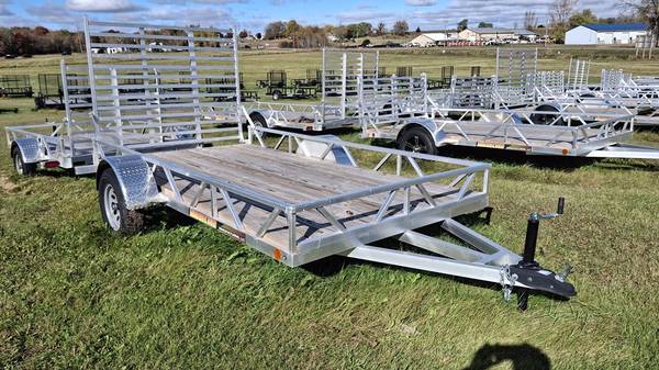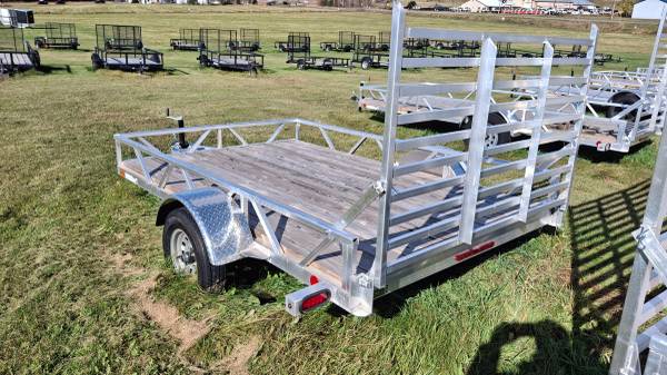 Item #662081 Ridgeline 6'4"x10' Aluminum Frame Utility Trailer 48" Aluminum straight ramp 13" Radial tires All aluminum tube construction Treated wood plank deck Welded truss side rack Triple tube...