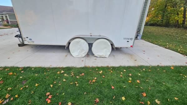 2018 model year. Used about five times to haul SxS. Has been sitting up on blocks with tires covered for the last 5 years. Perfect condition. Floor coated with truck bed liner. Spare tire and hitch...