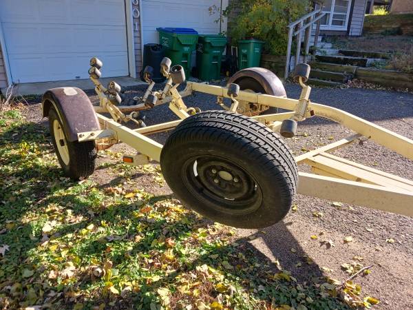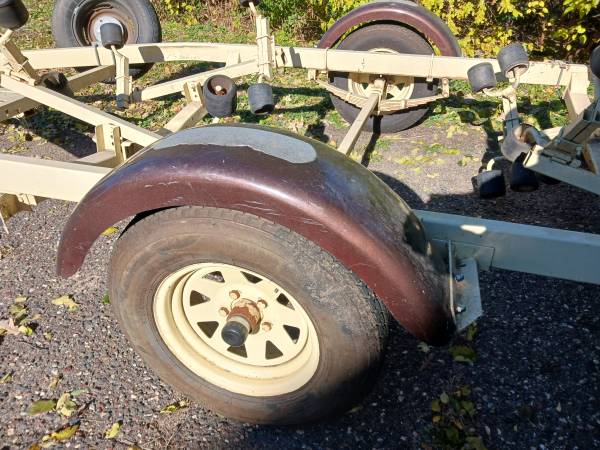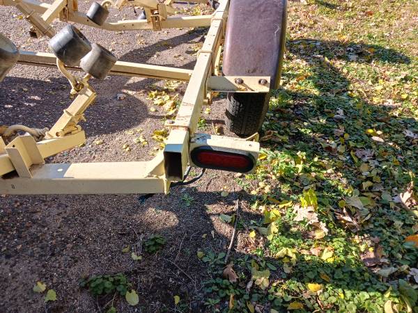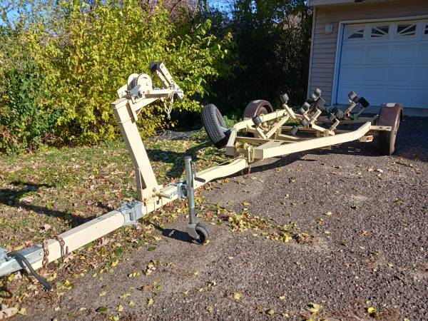 19' boat trailer. Everything is there. Lifetime license. Bearing buddies. New led lights. Swing away tongue. 2 wheel jack. Tilts (apparently, never used) Good tread and new spare with carrier. Pulls nice but the boat is history so it needs to be in your driveway, not mine! Or so I'm told! $800 fairly firm. Thanks.