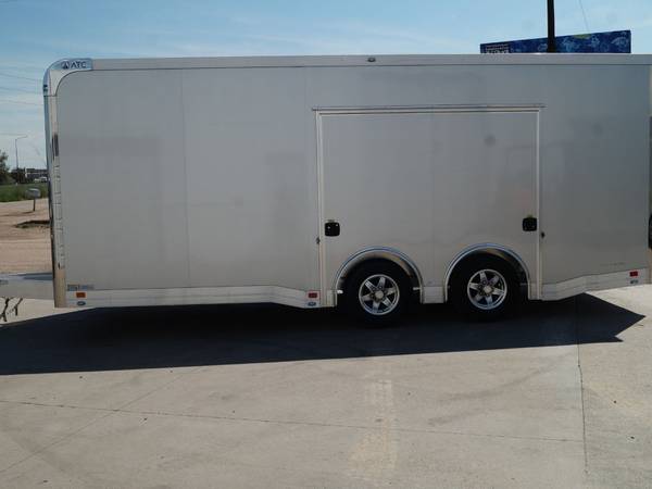 2022 ATC Quest 8.5x20 enclosed aluminum car hauler with a clean, finished interior. Built with an all-tube aluminum frame and full perimeter design.