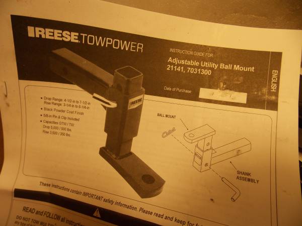 Reese Towpower 21141 Class 3 Adjustable Ball Mount 5000lb 2" Receiver - $49 (bloomington)