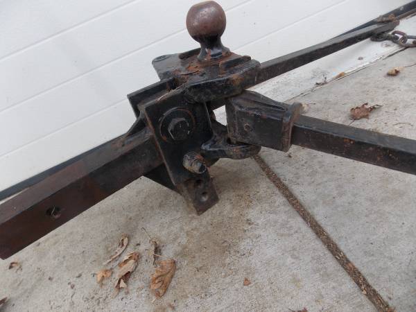 Reese Weight Distribution Head With Trunnion 21210 Bars For heavy Duty Load leveling Trailering. It has a super heavy duty 2-5/8 inch Ball and the ability for the Anti-Sway attachment. It's only missing the Chain Clampng deals that bolt to the Trailer Frame Arms. This set is usually over $400.00 when new and complete. Either complete this set and use it, or maybe you just need it for spare parts for your existing Trailer Towing Hitch System. Call (952)854-5 seven eight six
